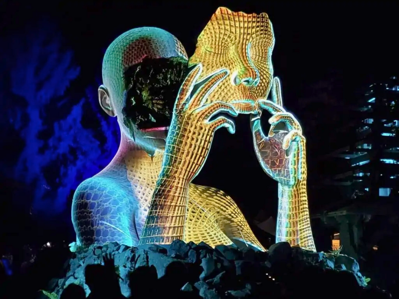 The talented artist behind Ven a la Luz is Daniel Popper (@danielpopper), known for his monumental interactive sculptures that blend art and nature. Popper is a South African artist with an international career, and his works are often found at art and music festivals. With this sculpture in Tulum, his goal was to create a piece that reminds visitors of the importance of reconnecting with nature and appreciating the environment around us